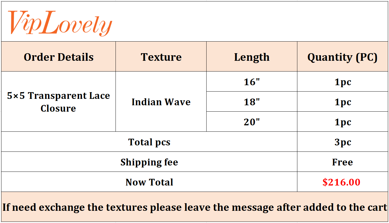 5×5 Transparent Lace Indian Wave 16 18 20Inch Free Shipping