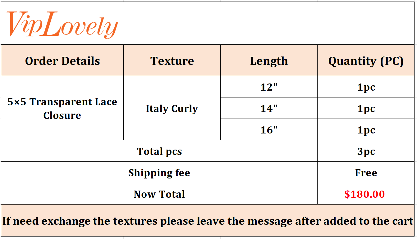 5×5 Transparent Lace Italy Curly 12 14 16Inch Free Shipping