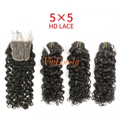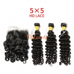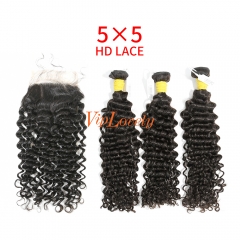 HD Lace Raw Human Hair Bundle with 5×5 Closure Deep Curly