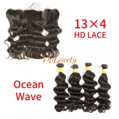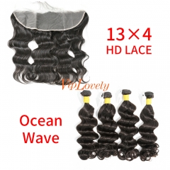 HD Lace Raw Human Hair Bundle with 13×4 Frontal Ocean Wave