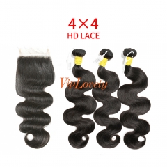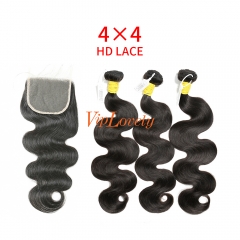 HD Lace Raw Human Hair Bundle with 4×4 Closure Body Wave