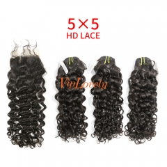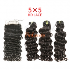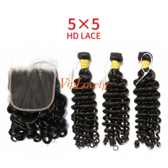 HD Lace Raw Human Hair Bundle with 5×5 Closure Deep Wave