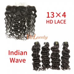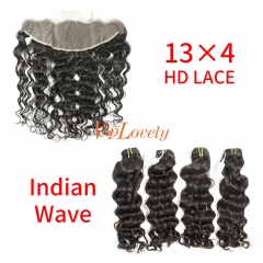 HD Lace Raw Human Hair Bundle with 13×4 Frontal Indian wave