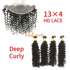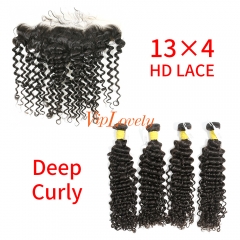 HD Lace Raw Human Hair Bundle with 13×4 Frontal Deep Curly