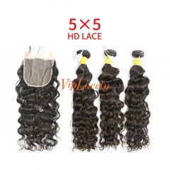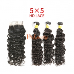 HD Lace Raw Human Hair Bundle with 5×5 Closure Ocean Wave
