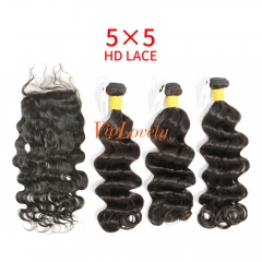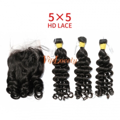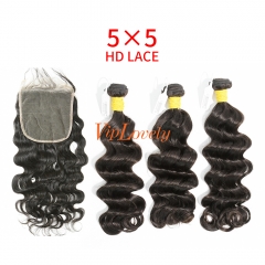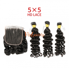 HD Lace Raw Human Hair Bundle with 5×5 Closure Loose Wave