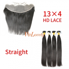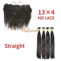 HD Lace Raw Human Hair Bundle with 13×4 Frontal Straight