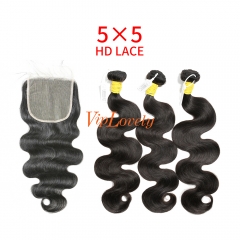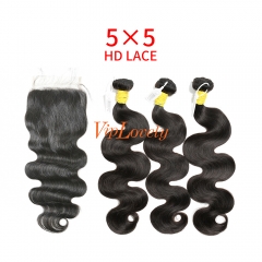 HD Lace Raw Human Hair Bundle with 5×5 Closure Body Wave