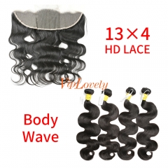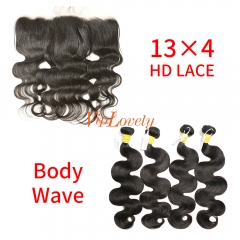 HD Lace Raw Human Hair Bundle with 13×4 Frontal Body Wave