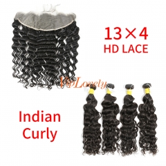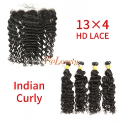 HD Lace Raw Human Hair Bundle with 13×4 Frontal Indian Curly