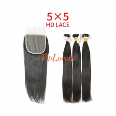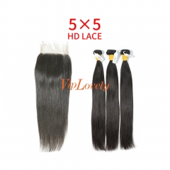 HD Lace Raw Human Hair Bundle with 5×5 Closure Straight
