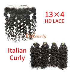HD Lace Raw Human Hair Bundle with 13×4 Frontal Italian Curly