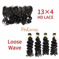 HD Lace Raw Human Hair Bundle with 13×4 Frontal Loose Wave