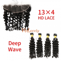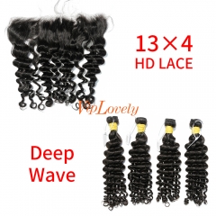 HD Lace Raw Human Hair Bundle with 13×4 Frontal Deep Wave