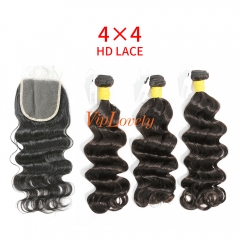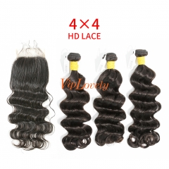HD Lace Raw Human Hair Bundle with 4×4 Closure Ocean Wave
