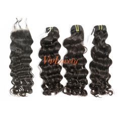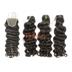 #1b Brazilian Raw Human Hair Weft with 4x4 Closure Indian wave