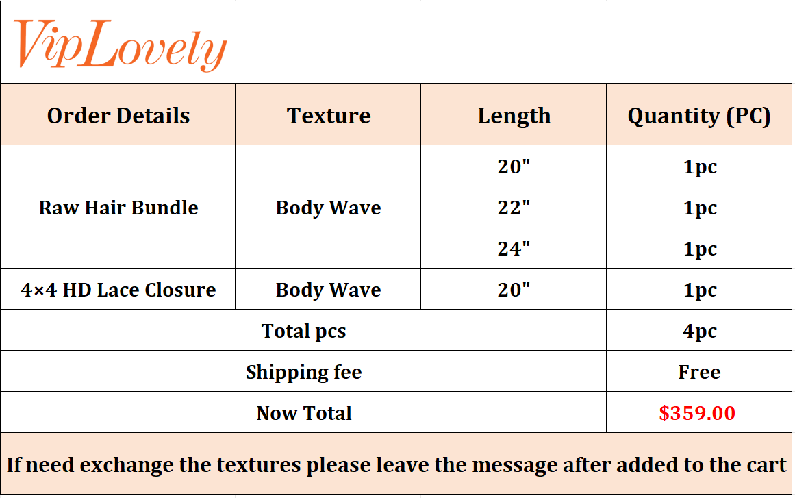 Raw Body Wave 20 22 24 Inch And 4x4 HD Lace 20 Inch Free Shipping