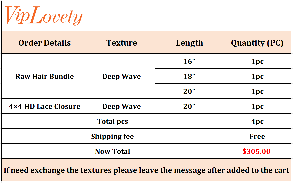 Raw Deep Wave 16 18 20 Inch And 4x4 HD Lace 20 Inch Free Shipping