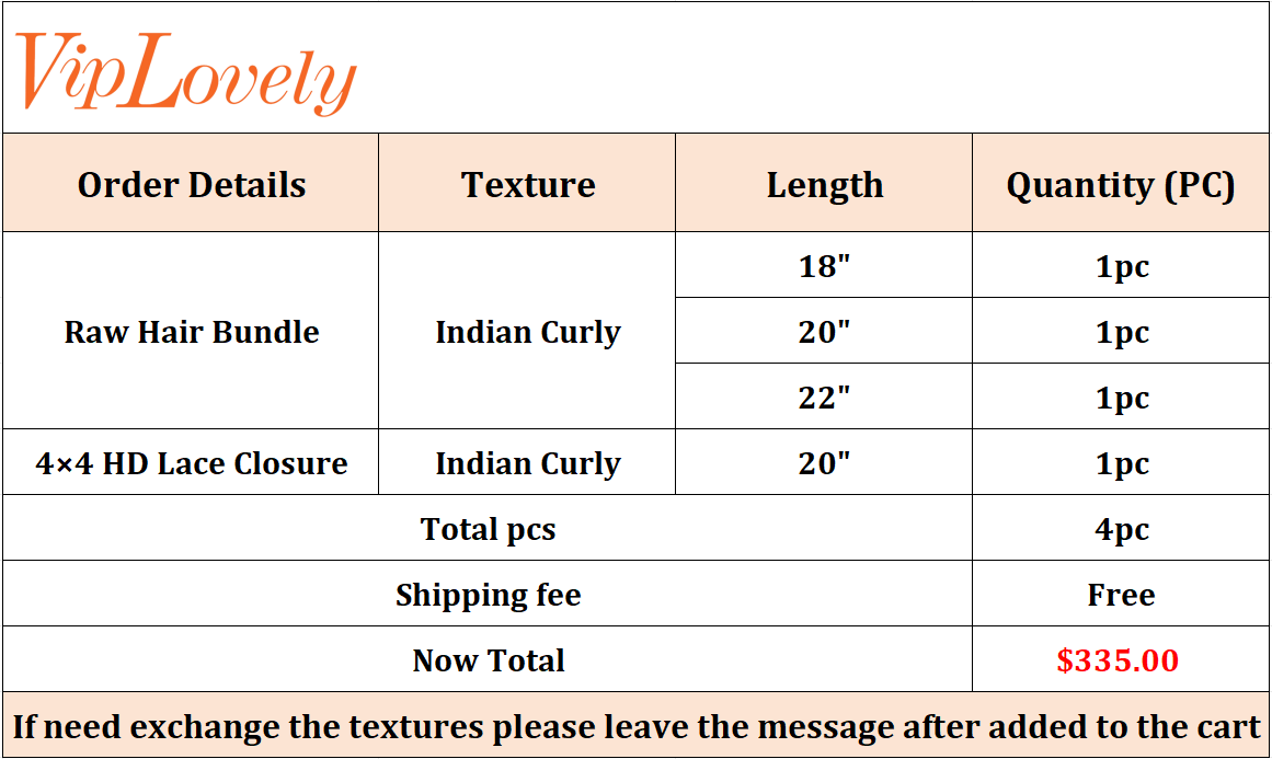 Raw Indian Curly 18 20 22 Inch And 4x4 HD Lace 20 Inch Free Shipping