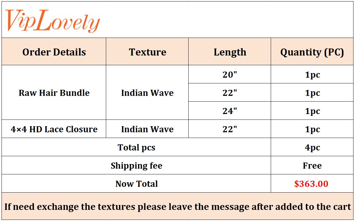 Raw Indian Wave 20 22 24 Inch And 4x4 HD Lace 22 Inch Free Shipping