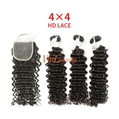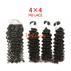 HD Lace Virgin Human Hair Bundle with 4×4 Closure Deep Curly