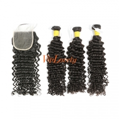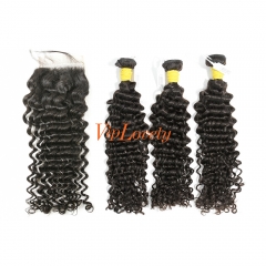 #1b Brazilian Raw Human Hair Weft with 4x4 Closure Deep Curly