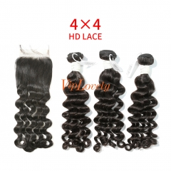 HD Lace Virgin Human Hair Bundle with 4×4 Closure Deep Wave