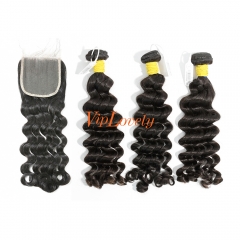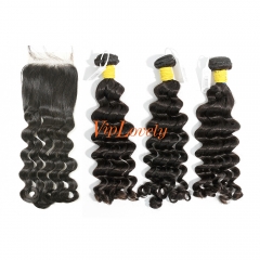 #1b Brazilian Raw Human Hair Weft with 4x4 Closure Deep Wave