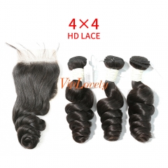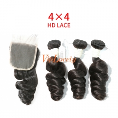 HD Lace Virgin Human Hair Bundle with 4×4 Closure Loose Wave