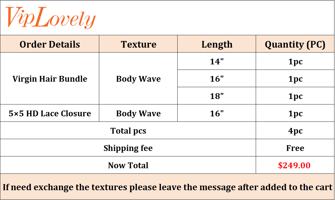 Virgin Body Wave 14 16 18 Inch And 5x5 HD Lace 16 Inch Free Shipping