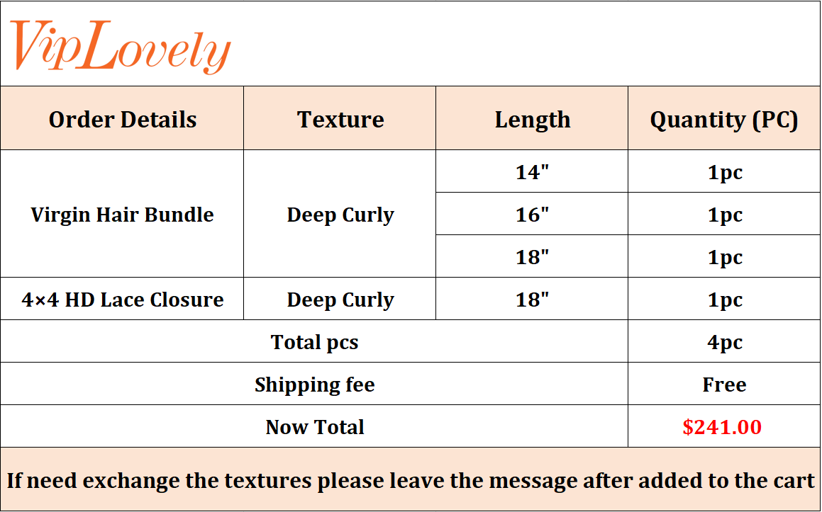 Virgin Deep Curly 14 16 18 Inch And 4x4 HD Lace 18 Inch Free Shipping