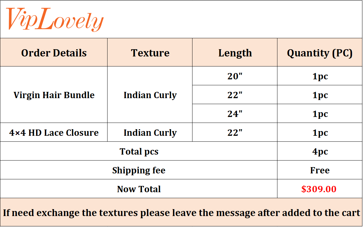 Virgin Indian Curly 20 22 24 Inch And 4x4 HD Lace 22 Inch Free Shipping